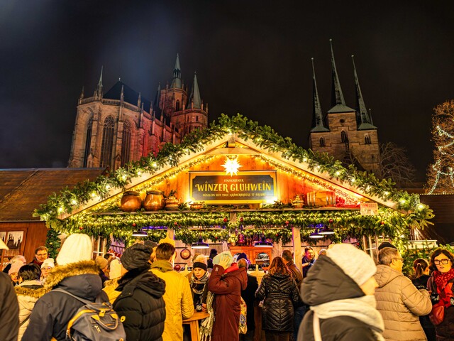 Hochwertiger Winzerglühwein, frisch zubereitet und voller Aroma – ein besonderer Genuss auf dem Erfurter Weihnachtsmarkt.