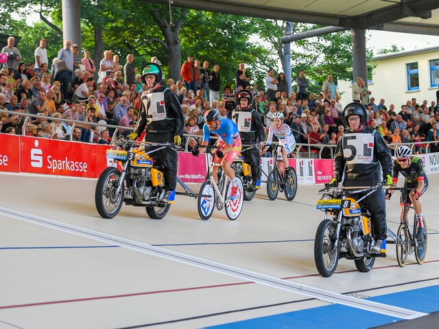 Steherrennen auf der ältesten Radrennbahn der Welt im Erfurter Andreasried.