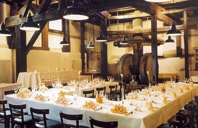 This historical tobacco mill is perfect for receptions, banqueting events and evening functions for between 20 and 55 people. Gastronomic highlights are the hot and cold buffets and the flambéed "Erfurt wheel" spit-roasts. The speciality of the Zum Güldenen Rade restaurant is Thuringian cooking with genuine homemade Thuringian dumplings. Fine food prepared by top chefs.