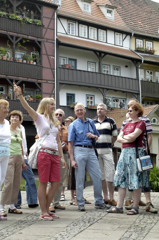 With the monumental ensemble of the Church of St. Severus and the cathedral with its 500-year-old "Gloriosa" bell, famous throughout the world for the beauty of its tone, as well as wealthy patrician townhouses, charming half-timbered buildings and a great many churches, which earned it the nickname the "Rome of Thuringia", the 1,260 year-old city of Erfurt is a veritable picture-book of German history. This tour will take you on an interesting walk through the old quarter, past the Merchants’ Bridge, the town hall, the university district, townhouses steeped in tradition and also the cathedral and Church of St. Severus (no internal viewings).