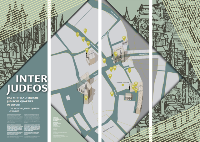Sie bietet einen Überblick über wichtige Stationen, historische Orte und bedeutende Sehenswürdigkeiten, die das jüdische Leben in Erfurt im Mittelalter prägten. Die Karte dient als Orientierungshilfe und lädt dazu ein, das Quartier eigenständig zu erkunden.