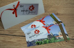 Erfurt-Gutscheine sind in den Filialen der Erfurter Bank eG im Stadtgebiet, in der Erfurt Tourist Information am Benediktsplatz 1 und im Online-Shop unter www.erfurt-gutschein.de erhältlich.