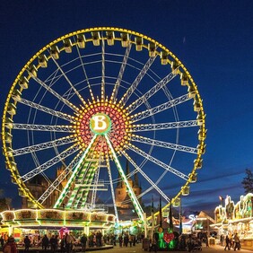 Erfurt, 19.09.2017 – Vom 22.09. bis zum 08.10. wird auf dem Erfurter Oktoberfest wieder zünftig gefeiert. Der Domplatz verwandelt sich mit zahlreichen Schaustellern, kulinarischer Vielfalt und einem großen Bierzelt in ein mitreißendes Volksfest. Eine besondere Attraktion ist dabei eines der größten transportablen Riesenräder der Welt – das Bellevue Riesenrad. Aus über 55 Metern Höhe können die Gäste in geschlossenen Gondeln aus der Vogelperspektive den Blick auf die Altstadt genießen. Dieses besondere Erlebnis kann nun auch mit dem Erfurt-Gutschein bezahlt werden. Das Bellevue Riesenrad ist eine von inzwischen über 175 Akzeptanzstellen, bei denen der Erfurt-Gutschein eingelöst werden kann. „In diesem Jahr akzeptieren wir bereits zum dritten Mal in folge den Erfurt-Gutschein an unseren Kassen. Und die Möglichkeit, den Gutschein für eine Fahrt hoch über dem Domplatz einzusetzen, erfreut sich immer größerer Beliebtheit." resümiert Richard Krolzig, Sprecher von „Oscar Bruch jr. – Events & Tourist Attractions“.