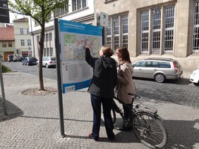 Erfurt, 18.04.2012 - Ein neues Informationssystem erleichtert Radfahrern in Erfurt von nun an die Orientierung vor Ort. An vier exponierten Standorten in Möbisburg, am Erfurter Hauptbahnhof, am Rathausparkplatz und am Ringelberg können sich Touristen und Einheimische ab sofort über die Radwege in Erfurt und Thüringen sowie über die Sehenswürdigkeiten vor Ort informieren.