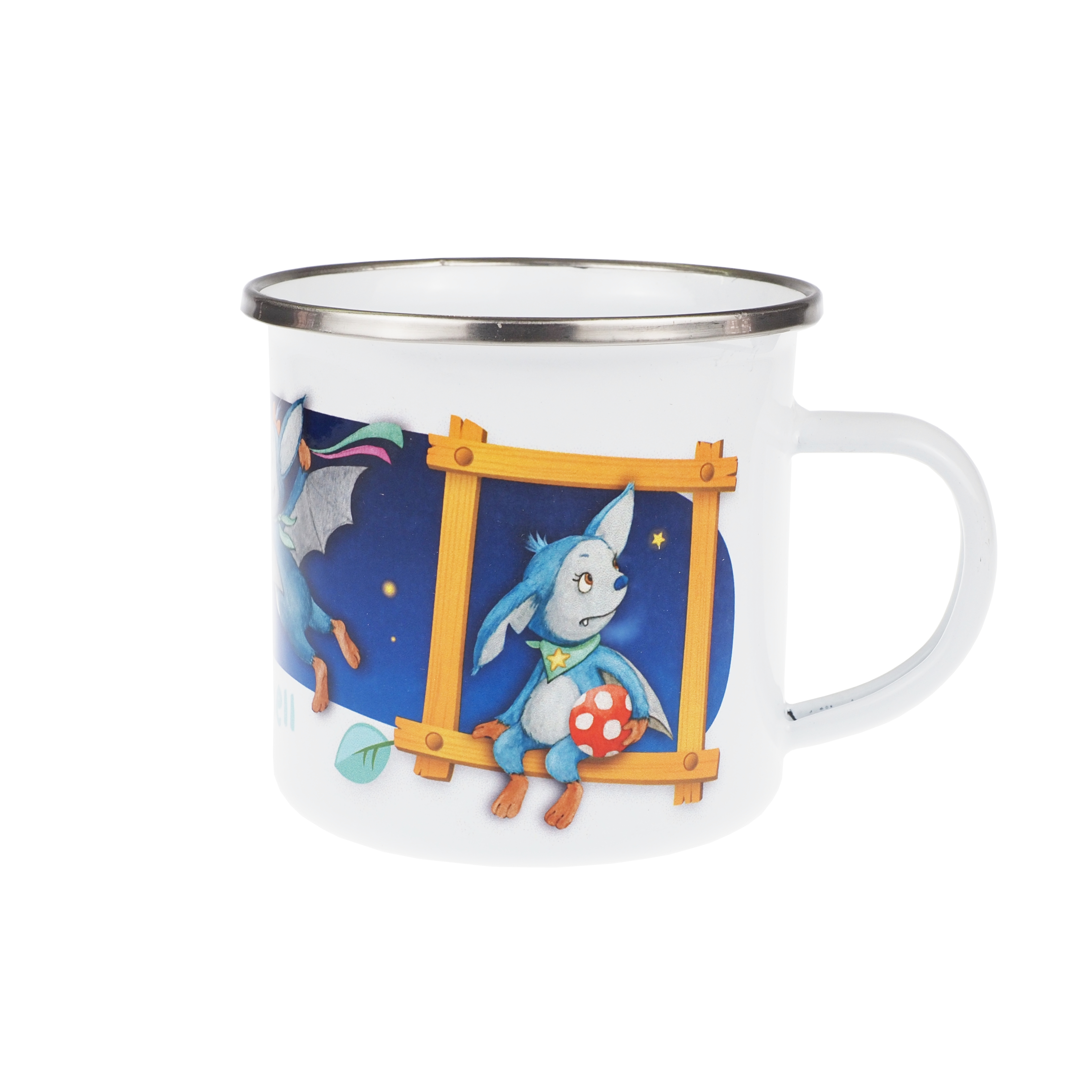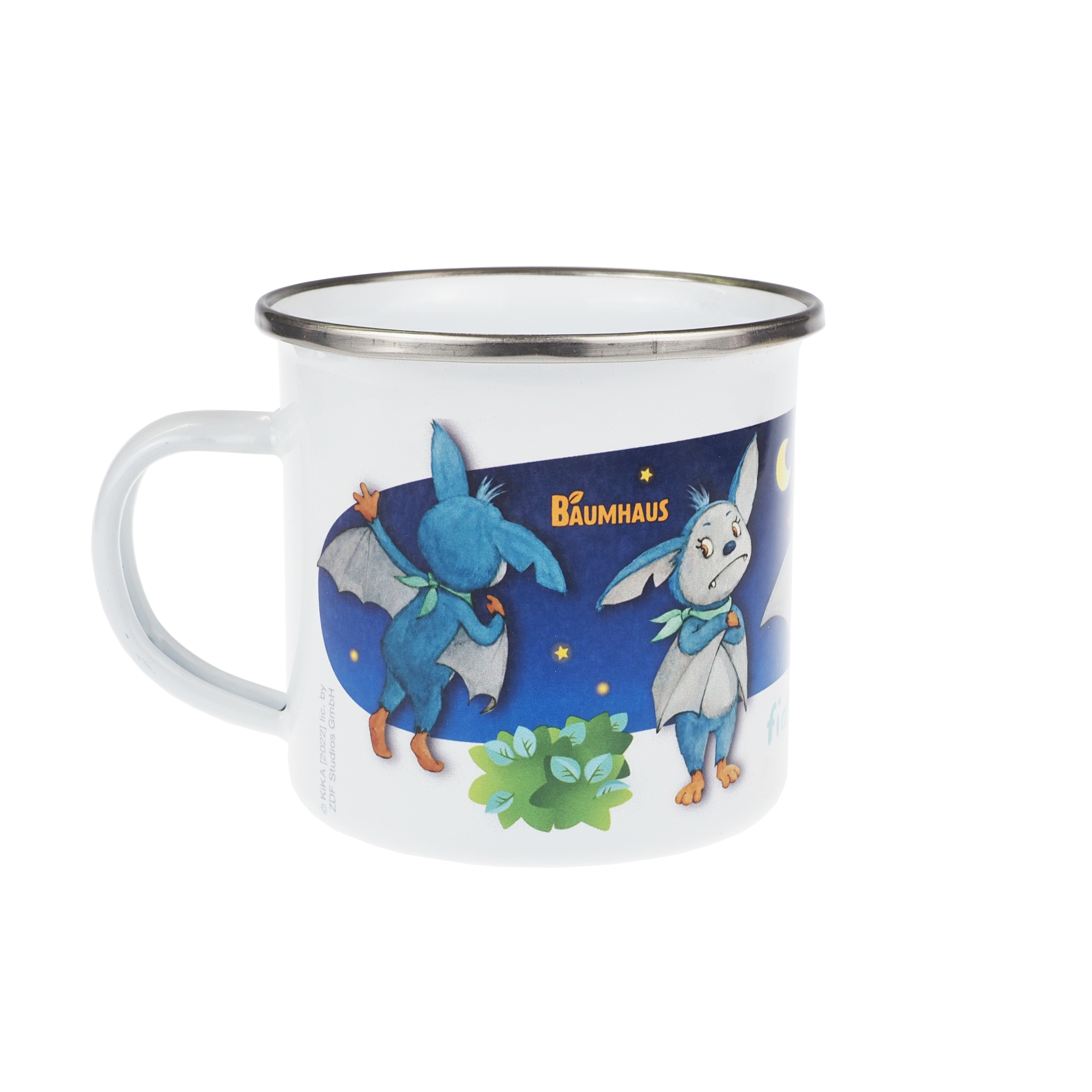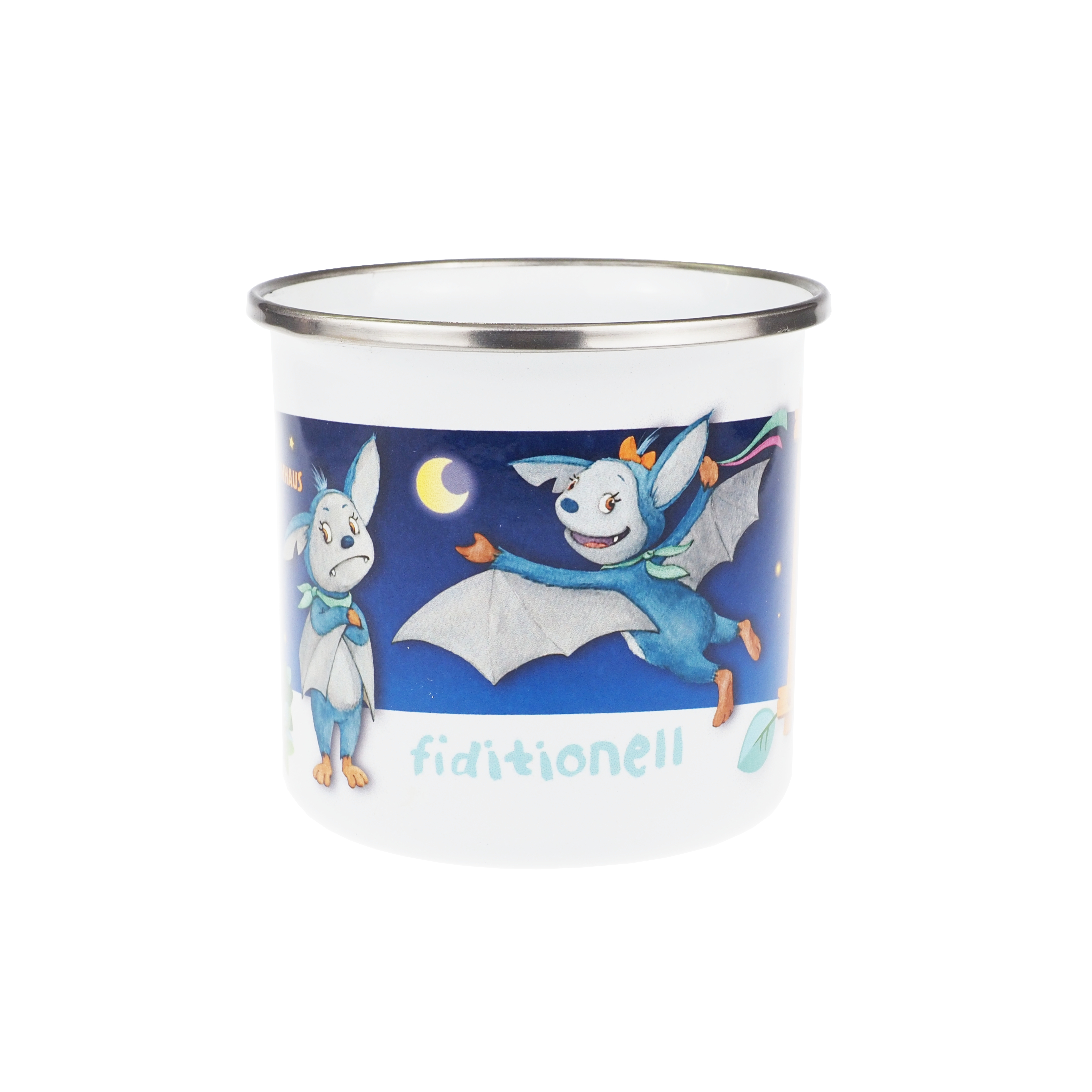 Wunderschöne Emailletasse, bedruckt mit der kleinen Fledermaus Fidi, die aus dem KiKA Baumhaus bekannt ist. Hohe Farbbrillanz, Handwäsche empfohlen. Die Tassen werden von uns gestaltet und in Handarbeit bedruckt. Die Geschenkidee für alle Fans der KIKA Fledermaus. Idealer Begleiter für Camping und Freizeit