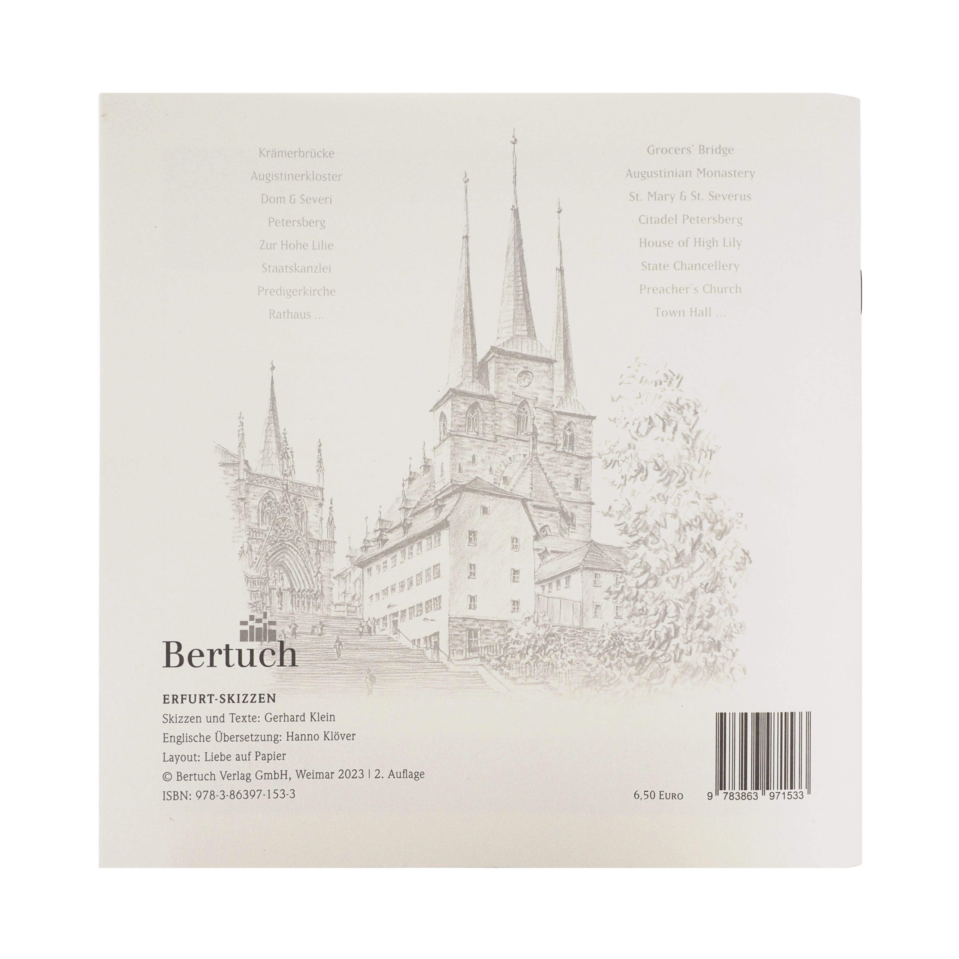 Der Zeichner Gerhard Klein hat die wichtigsten historischen Bauwerke der Stadt in Kohle festgehalten. Den originellen Skizzen sind Texte über die Erbauung und Nutzung der jeweiligen repräsentativen Gebäude beigestellt. 18 Sehenswürdigkeiten sind abgebildet, darunter die im Renaissance- und Barockstil erbaute Staatskanzlei, die weltberühmte Krämerbrücke, der Mariendom und die Severikirche, das Augustinerkloster, die Zitadelle Petersberg, das neogothische Rathaus u.v.m.