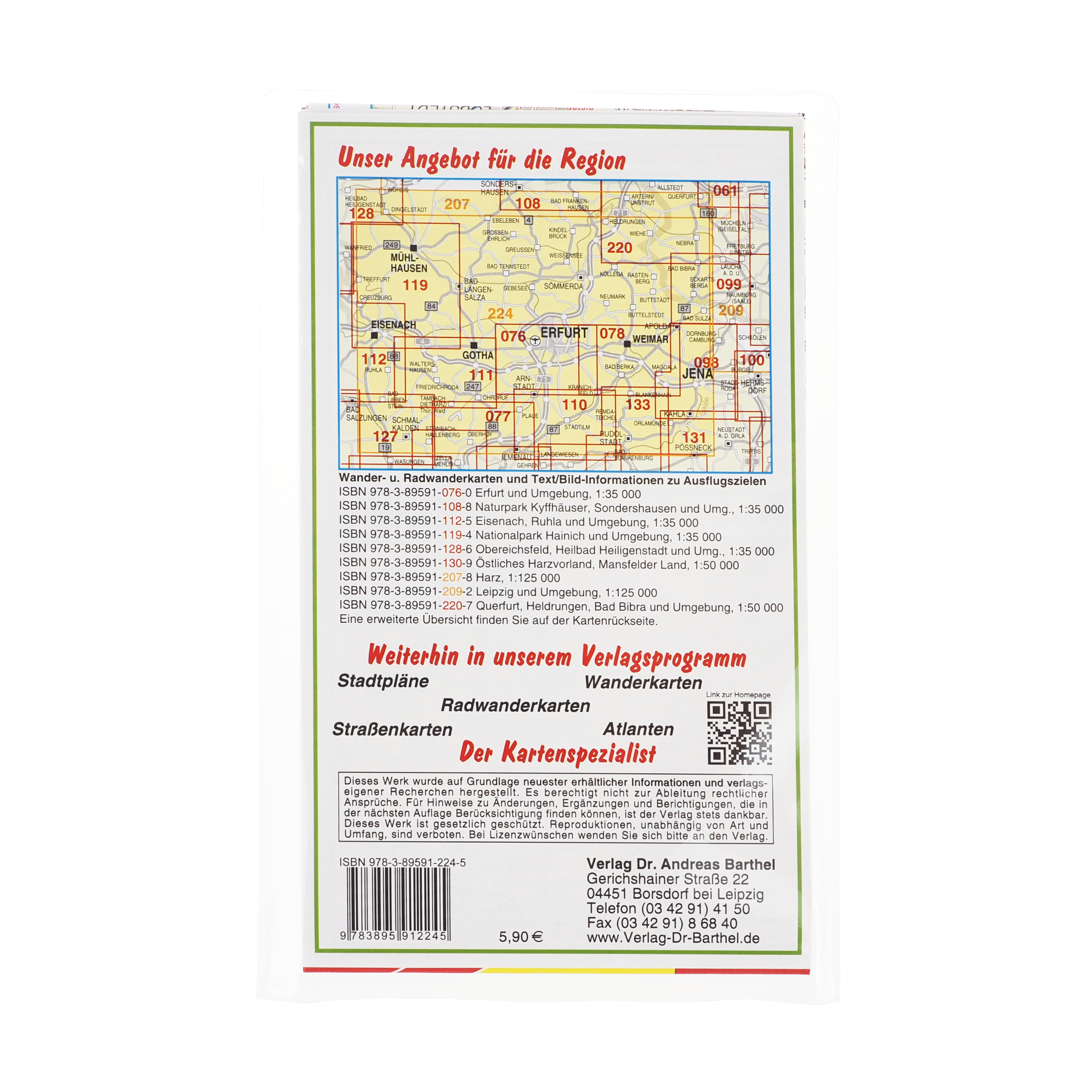 Unterwegs zwischen dem Thüringer Wald, Gotha, Mühlhausen, Bad Langensalza, Heldrungen, Nebra und Apolda. Diese Straßenkarte mit vielen touristischen Hinweisen erhalten Sie in einer wetterfesten Klarsichthülle.