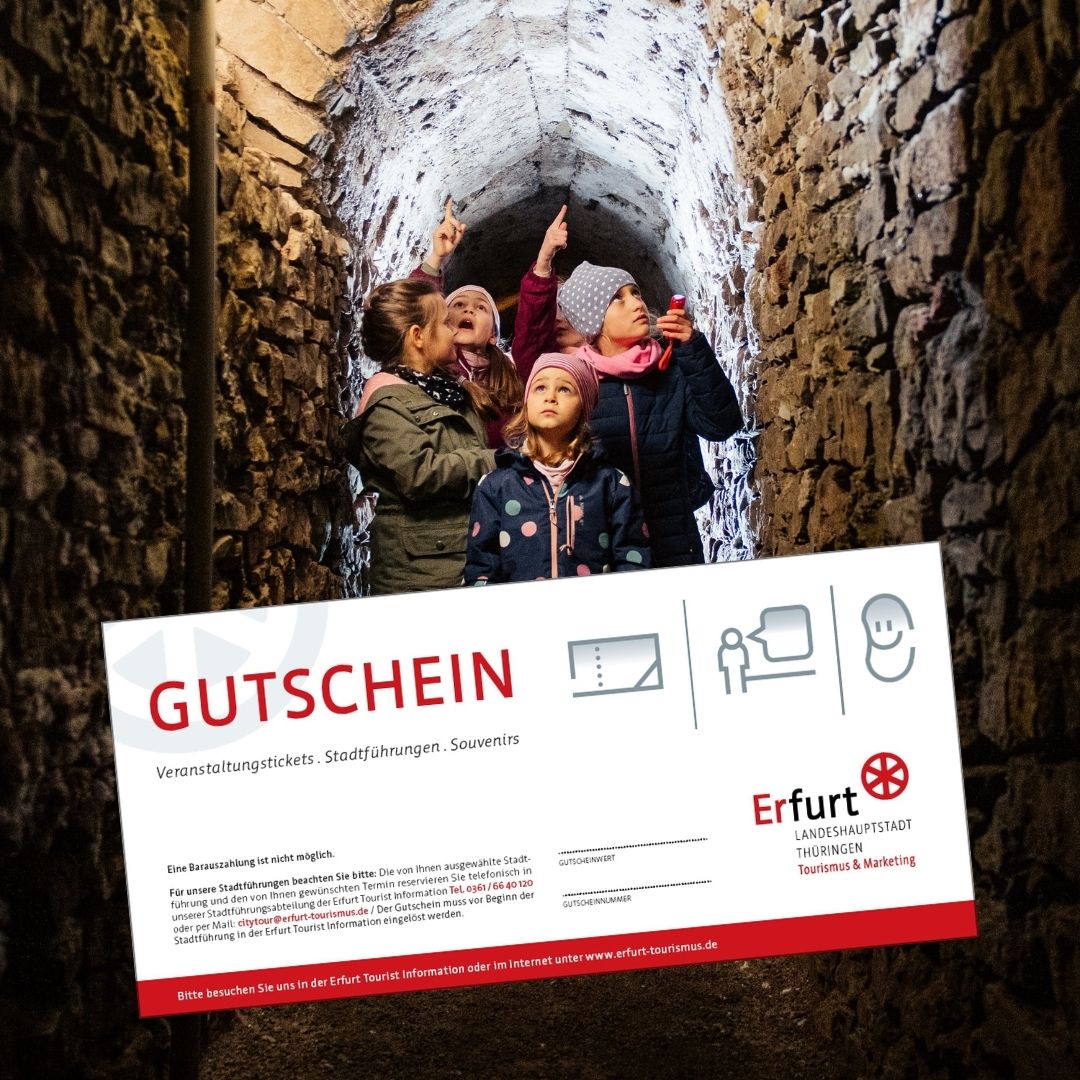 Um eine Voranmeldung unter 0361 66 40 120 wird gebeten. Der Gutschein ist bei Buchung in der Erfurt Tourist Information, dem Besucherzentrum auf der Zitadelle Petersberg oder beim jeweiligen Stadtführer abzugeben.