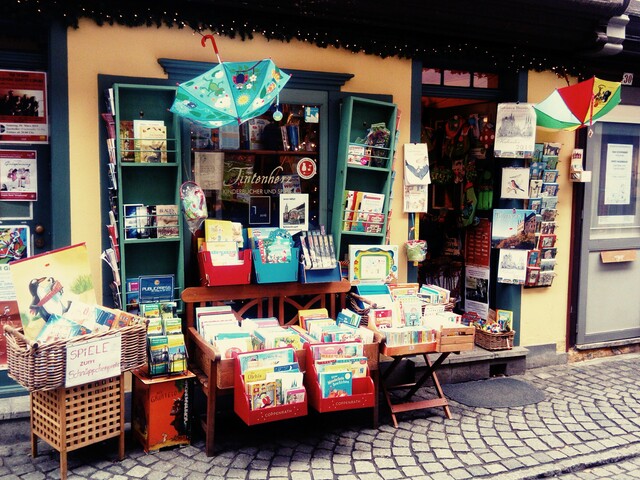 Cornelia Funke hätte in der Tintenwelt keinen schöneren Buchladen gefunden! Während unten das Wasser der Gera hindurchströmt, könnt Ihr bei uns nach Herzenslust stöbern oder Euch beraten lassen. Neben aktuellen hochwertigen Kinder- und Jugendbüchern und Spielen führen wir auch gute DDR Kinderliteratur.