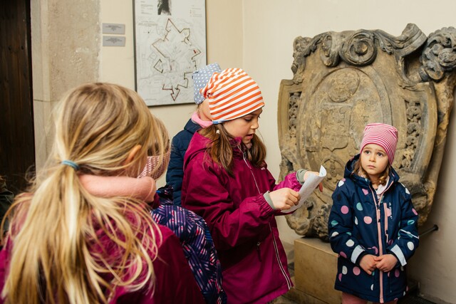 Hier beschäftigen wir uns mit dem Wappen vom Johann Philipp von Schönborn. Außerdem wollen wir klären, was eine Bastion, ein Horchgang und eine Verteidigungsgalerie sind und was sie voneinander unterscheidet. Unsere zweite Station ist das Militärhistorische Museum, in dem wir uns die Museumsräume anschauen und vor allem die dortigen Wappen, wie das von Anselm Franz, genauer unter die Lupe nehmen. Zum Abschluss unseres Rundgangs gehen wir in die Kinderwerkstatt und werden selbst kreativ. Wir gestalten ein eigenes Wappen als Button, das jedes Kind als Andenken mit nach Hause nehmen darf.