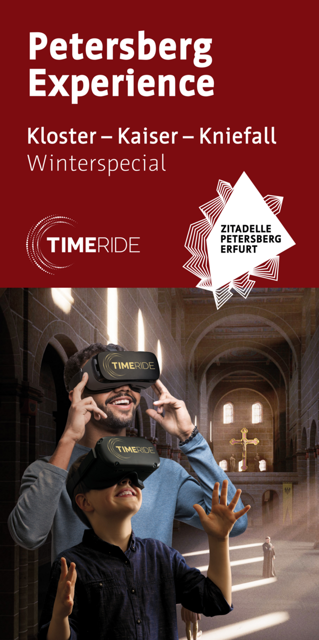 Bei diesem rund 90-minütigen Rundgang über den Petersberg erhalten Sie nicht nur die Möglichkeit, virtuell in die Geschichte einzutauchen und die Atmosphäre des Mittelalters hautnah zu erleben – Sie werden ein Teil von ihr!