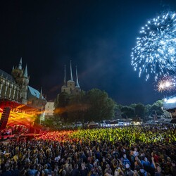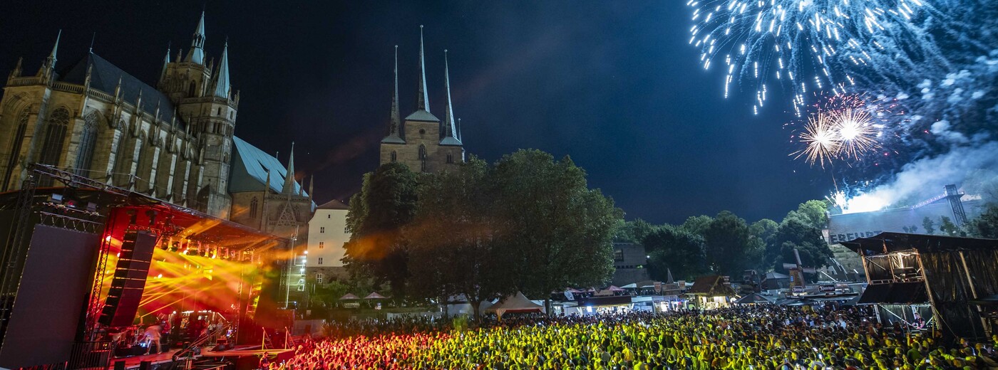 Erleben Sie vom 19. bis 21. Juni 2026 das 49.Krämerbrückenfest und tauchen Sie in ein buntes Fest der Kunst, Kultur und Unterhaltung mitten in Erfurts Altstadt ein. Wie immer steht die berühmte Krämerbrücke im Mittelpunkt des Festes und verbindet Vergangenheit und Gegenwart auf einzigartige Weise. Rund um die Brücke, in deren Zentrum man die Kunstinstallation betrachten kann, gibt es Musik, Gauklerei und Kulinarisches. Auf Plätzen und Höfen – über den Domplatz bis hin zum Theatervorplatz oder auch dem Petersberg – sind neben bekannten Formaten auch viele Neue zu entdecken. Mit dabei sind wieder viele Thüringer und Erfurter Kulturakteure und Partner. Es wird ein unvergessliches Festwochenende mit einem abwechslungsreichen Programm und einer einzigartigen Atmosphäre – und das alles kostenlos und unter freiem Himmel!