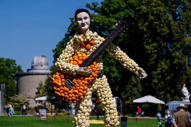 Erleben Sie die faszinierende Welt der Kürbiskunst bei unserer diesjährigen Kürbisausstellung „Kürbissymphonie – Von Klassik bis Pop“. Aus 50.000 Kürbissen entstehen 11 beeindruckende Kürbisfiguren – die perfekte Kulisse für tolle Fotos!