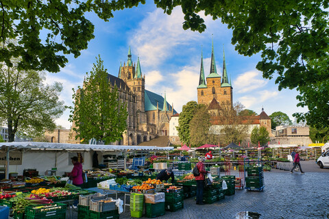 Vor der das Stadtbild prägenden Silhouette von Dom und der St. Severi findet regelmäßig der Erfurter Wochenmarkt statt. Das Angebot besteht vorwiegend aus regionalen Produkten.